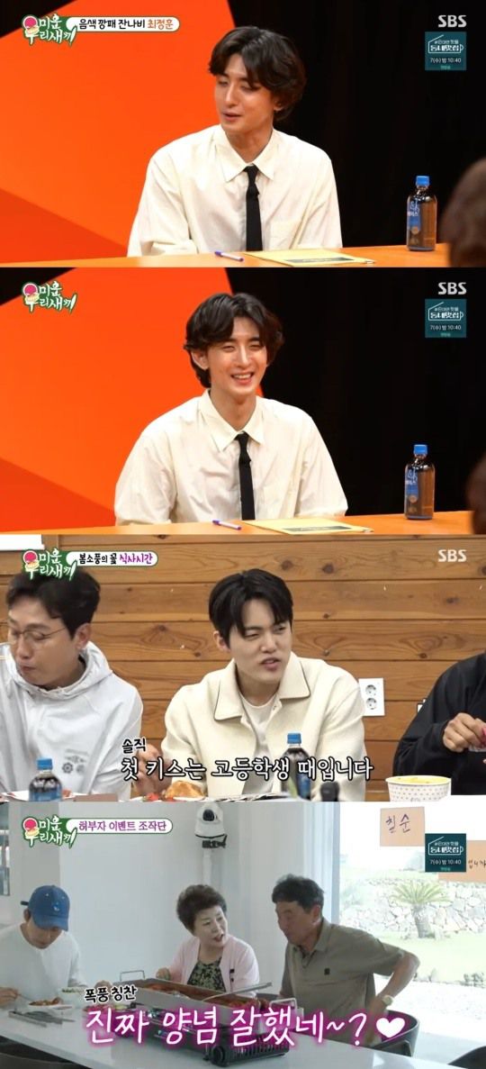 이어 '2023 미우새 봄소풍'이 그려진 가운데 탁재훈, 김준호, 이상민, 김종국, 최시원, 김희철, 딘딘, 김건우가 함께 하게 됐다. 식사를 하다가 탁재훈은 김건우한테 갑자기 "첫키스가 언제냐"고 물어 당황케 했다. 김건우는 "고등학생때 했다"고 말했다. 곧이어 마지막 키스가 언제냐는 질문도 나왔다.