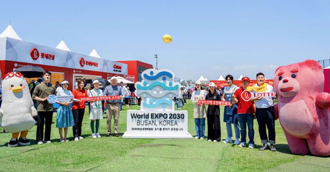 4일 롯데그룹에 따르면 롯데는 롯데오픈 갤러리 플라자존에 부산세계박람회 포토존을 설치하고, 홍보 영상을 상영하며 부산엑스포 유치 홍보에 힘을 쏟았다. 부산시 대표 캐릭터 부기와 롯데홈쇼핑 인기 캐릭터 벨리곰은 갤러리를 대상으로 유치 응원 분위기를 이끌었다.