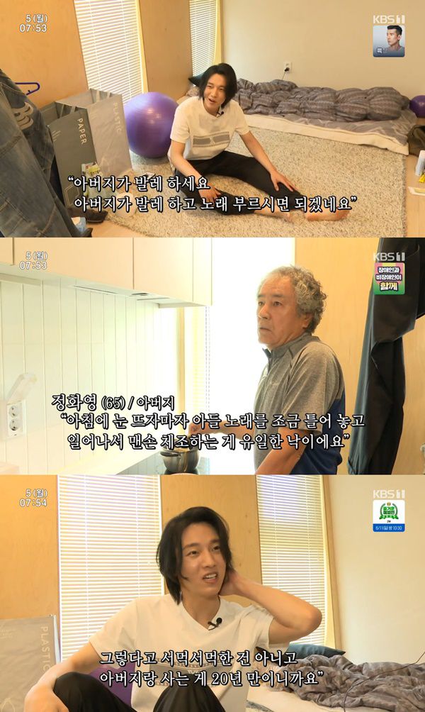 이날 정민찬은 아버지 정화영 씨를 향해 "제 노래를 듣고 계시네요. 안 지겨우세요? 이 노래는 아침 7시부터인지 8시부터 듣고 계세요""라고 말했다.