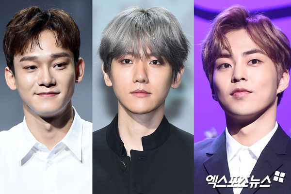 그룹 EXO의 멤버 백현, 시우민, 첸(변백현, 김민석, 김종대)의 입장
