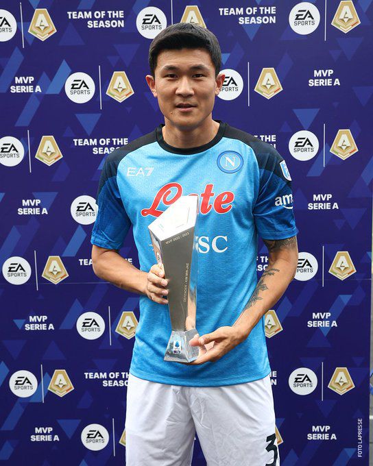 앞서 김민재는 세리에A 사무국이 선정한 올 시즌 최고의 수비수에 선정됐다. 팀 동료 조바니 디 로렌초와 AC밀란의 수비수 테오 에르난데스를 제치고 수상자가 됐다. 경기에 앞서 시상식이 열렸고 김민재는 트로피를 들어올리며 활짝 웃었다. 팬들도 김민재를 향해 'KIM, KIM, KIM' 연호를 빼놓지 않았다.