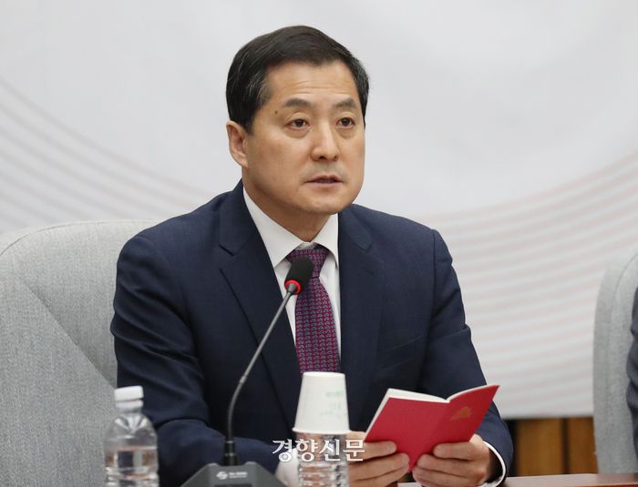 박대출 국민의힘 정책위의장이 지난달 19일 국회에서 열린 원내대책회의에서 발언하고 있다. 박민규 선임기자 |