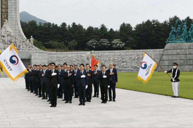 박민식 초대 국가보훈부 장관이 5일 오전 대전 유성구 국립대전현충원을 찾아 참배하고 있다. (사진=연합뉴스) |