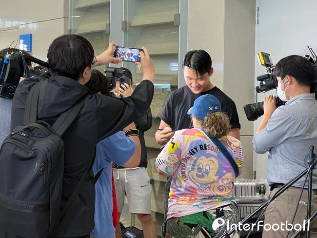 취재진 인터뷰가 끝나자마자 즉석에서 팬사인회가 열렸다. 방금 전 기자에게 질문했던 멕시코 관광객도 얼른 가세했다. 오현규는 장거리 비행에 따른 피곤함에도 밝은 얼굴로 팬들과 인사하며 사인을 전했다.