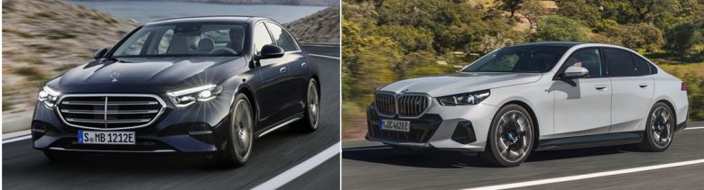 메르세데스-벤츠 ‘E-클래스’(왼쪽), BMW 신형 5시리즈.[메르세데스-벤츠, BMW 코리아 제공]