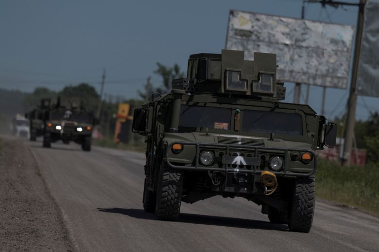 4일(현지시간) 우크라이나 하르키우 지역에서 험비 군용 차량이 우크라이나-러시아 접경지 인근 도로를 달리고 있다. 5일 러시아 국방부는 전날 우크라이나가 러시아를 겨냥한 대규모 군사작전을 시작했다고 밝혔다. [연합] |