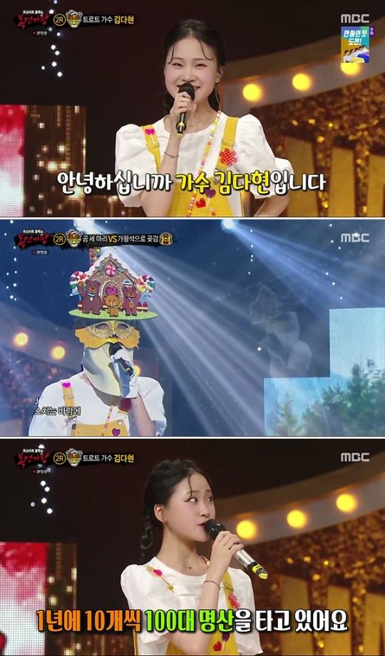 4일 방송된 MBC ‘복면가왕’에서는 ‘가왕석으로 곶감’과 대결을 펼친 곰 세 마리의 정체가 김다현으로 밝혀졌다.