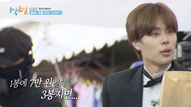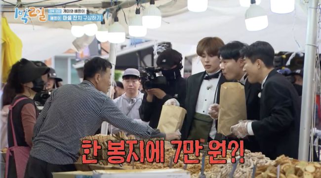 결국 과자 한 봉지에 약 7만 원이며, 세 봉지를 합하면 약 21만 원이 나온다. 그러나 방송에서 연정훈, 김종민, 유선호와 사장의 흥정 끝에 세 봉지를 총 14만 원에 구매한 것이 맞다.