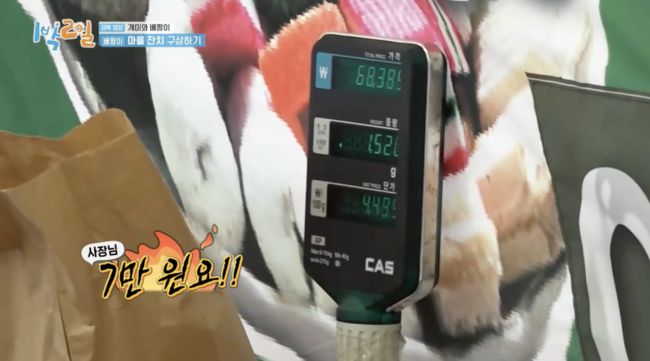 연정훈, 김종민, 유선호는 각각 종이봉투를 받고 먹고 싶은 과자를 수북하게 담았다. 김종민이 담은 땅콩과자 등을 먼저 저울에 달았는데 한 봉지에 6만 8745원이었다. 이에 사장님은 “7만 원이요”라고 반올림한 가격을 불렀다. 이에 세 사람은 “너무 비싸다”고 깜짝 놀랐다.