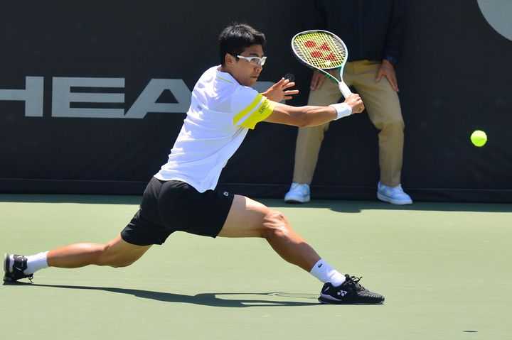 [서울=뉴시스] 남자프로테니스(ATP) 부산오픈 챌린저 단식 1회전에서 경기를 펼치는 정현. (사진 = 부산오픈 챌린저 대회 조직위원회 제공) *재판매 및 DB 금지