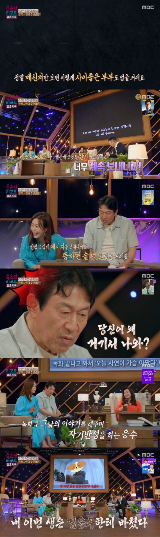 5일 방송된 MBC '오은영 리포트-결혼 지옥'(이하 '결혼지옥')에서는 1주년 특집으로 꾸며진 가운데 김응수 아내가 깜짝 사연을 보낸 장면이 전파를 탔다.