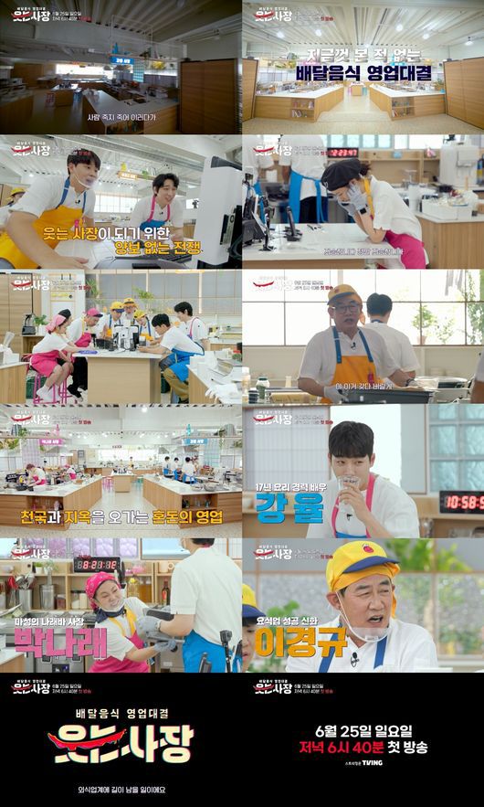 배달 영업에 생존이 달린 3팀의 숨 가쁜 경쟁은 오는 6월 25일 일요일 저녁 6시 40분에 방송되는 JTBC 신규 예능 프로그램 ‘웃는 사장’에서 만날 수 있다.