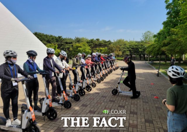 서울시가 이용자 운전면허를 확인하지 않는 개인형 이동장치(PM) 대여업체를 견인유예 조치에서 배제하는 페널티를 부여한다. PM 이용자 교육 모습. /서울시 제공
