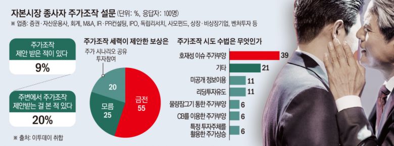 본지가 자본시장 관계자 100명을 대상으로 실시한 설문조사에서도 주가조작 예방법으로 ‘기자들이 쓴 기사가 허위인지 빨리 파악해야 한다’, ‘기자와 세력과의 관계를 헤집어야 한다’ 등을 제시했다.