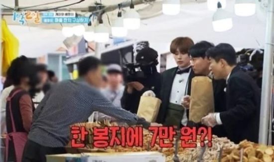 그런데 이들이 행사장 내 옛날 과자 가게에서 과자를 사는 과정에서 세 봉지의 과잣값이 총 21만원이나 돼 논란이 일었다. 비싼 과자 가격에 놀란 출연진들은 구매를 철회하길 원했으나, 상인이 이미 포장이 완료됐다고 하자 협상을 거치는 장면도 나왔다. 결국 이 상인은 ‘유명인이니 깎아주겠다’며 과자 세 봉지를 14만원에 판매했다.