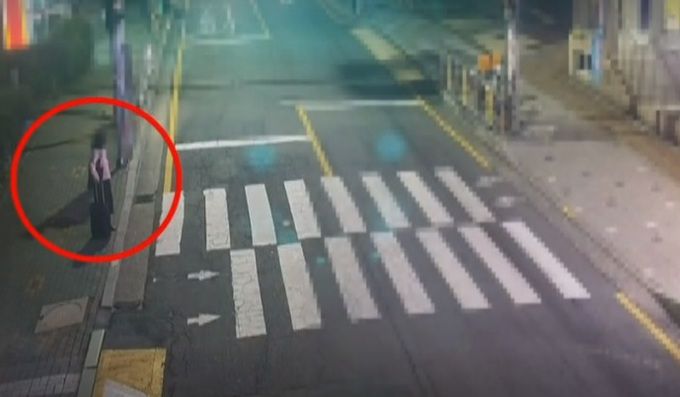 지난달 26일 부산 금정구 소재 또래 여성 A씨 집에서 상대를 살인한 뒤 나온 정유정(23·빨간 원)이 자신의 집으로 가 캐리어를 챙긴 뒤 시신을 옮기기 위해 피해자 집으로 향하는 모습. 채널A 방송화면 갈무리