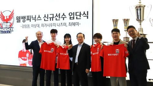 웰뱅피닉스는 지난 5일 서울시 용산구 웰컴금융타워에서 신규 선수 입단식을 열고 7인 체제 팀 구성을 완료했다.