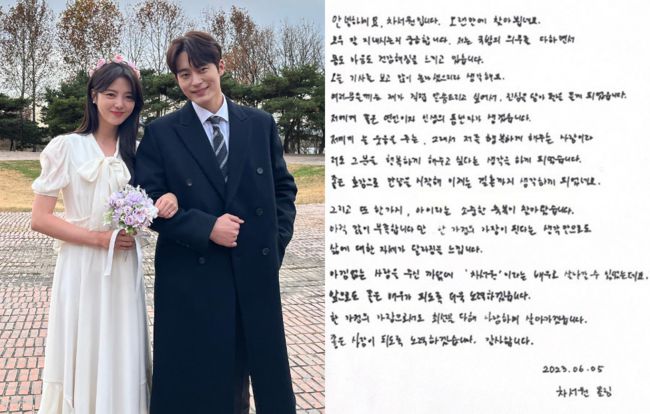 [OSEN=김나연 기자] 배우 엄현경과의 결혼 및 2세 소식을 전한 차서원이 자필 편지를 통해 직접 심경을 전했다.