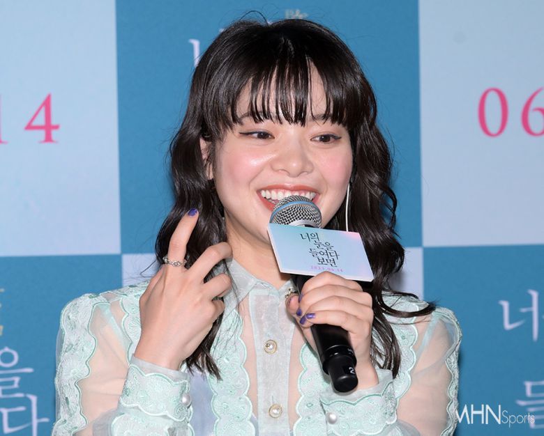 일본 배우 키시이 유키노가 7일 오전 서울 광진구 롯데시네마 건대입구에서 진행된 영화 '너의 눈을 들여다보면'(감독 미야케 쇼) 언론 시사회에 참석해 질문에 답하고 있다.