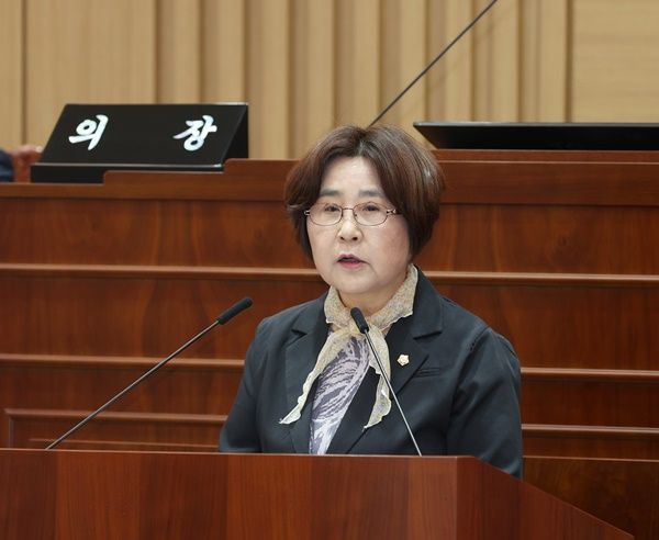 해남군의회 민경매 의원이 제 328회 임시회 1차본회의에서 자유발언을 하고 있다 = 해남군의회 제공