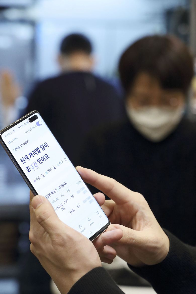 KT 'AI 통화비서'가 업주 대신 전화를 받는 모습. /KT