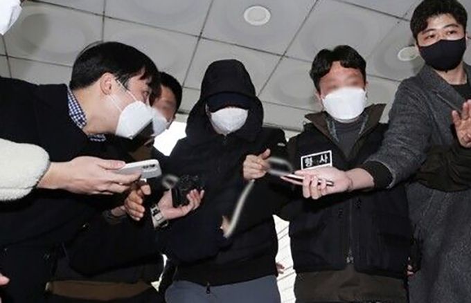 성관계 불법 촬영한 혐의로 긴급체포된 한 기업 회장 아들 권모 씨가 2021년 서울 서초구 서울중앙지법에서 열린 영장실질심사에 출석하며 법정으로 향하고 있다. 연합뉴스