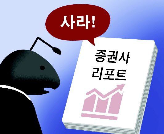 ▷이렇다 보니 증권사 리포트의 숨은 ‘행간’을 읽어내야 한다는 말까지 나온다. 중립이나 목표 주가 하향은 사실상 팔라는 신호다. ‘이제 날개를 달았다’는 말은 ‘아직은 갈 길이 멀다’는 얘기다. 아예 ‘보고서가 나오면 매도 타이밍’이란 인식까지 있다. ‘닥치고 매수’ 리포트는 전문가들이 많은 정보를 바탕으로 합리적으로 기업을 분석했을 것이란 투자자들의 신뢰를 저버리는 행위다. 사기나 다름없다. 증권사가 공신력 있는 투자 길잡이 역할을 하지 못하니 거짓 정보와 작전이 판치기 쉬운 토양이 만들어지는 것이다.