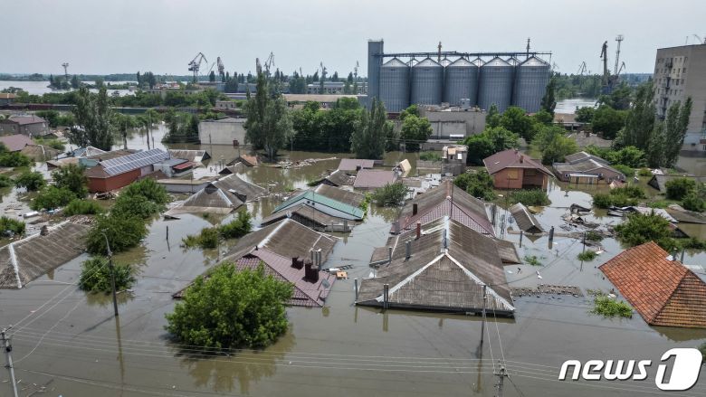 (서울=뉴스1) 박형기 기자 = 우크라이나 카호우카 댐 폭파로 우크라이나 남부 헤르손 지역에서 대홍수가 발생, 수천 명의 이재민이 발생한 것은 물론 수많은 사람과 가축이 희생된 것으로 알려지고 있다.