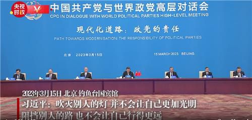 제시된 첫 문장은 시 주석이 지난 3월 열린 '중국 공산당과 세계 정당 고위층 토론회'에서 한 발언이다.
