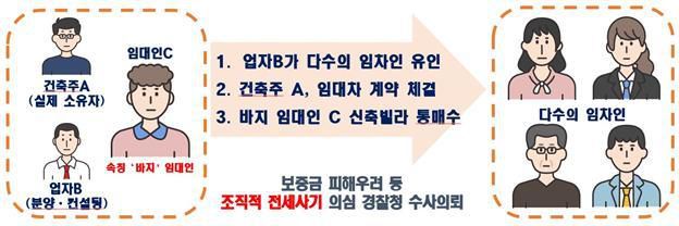 우선 빌라 건축주와 분양컨설팅업자가 한 팀이 돼 다량의 빌라를 사들인 후 바지 임대인을 뽑은 전형적인 전세사기 형태다.