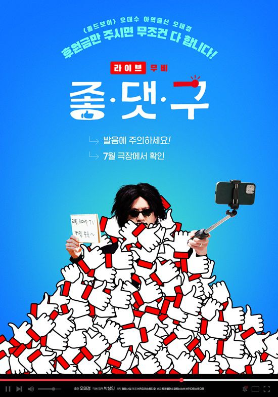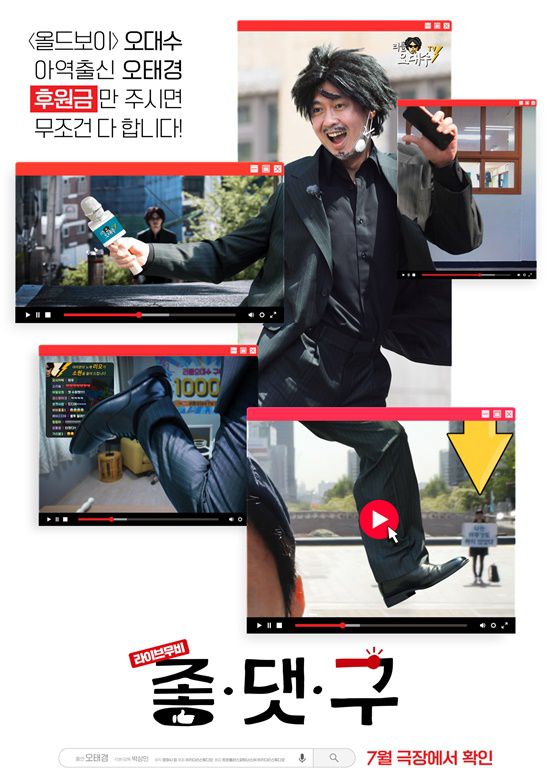 '좋.댓.구'는 박찬욱 감독의 영화 '올드보이'의 오대수 아역으로 한 때 이름을 날렸던 배우 오태경(오태경 분)이 유튜브의 노예로 화려하게 '떡상' 길을 걷던 중 한순간에 주작 논란에 휩싸이면서 벌어지는 이야기를 담은 영화다.