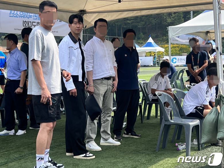 손흥민은 8일 오전 9시 9분쯤 춘천 동면 손흥민체육공원에서 열리는 손흥민 국제 유소년 친선 축구대회 이틀째에 모습을 드러냈다.