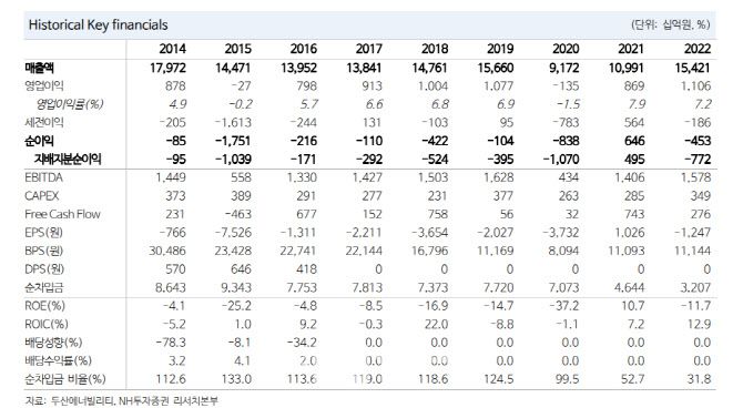 [이데일리 양지윤 기자] NH투자증권은 8일 두산에너빌리티(034020)에 대해 대형 원전 본계약은 하반기부터 시작되며 추가 수주가 예상보다 빠르게 이어질 것으로 내다봤다. 소형모듈원자로(SMR)로 이어지는 중장기 방향성으로 원전 부문의 기업가치가 우상향할 것으로 진단했다. 투자의견은 매수, 목표주가는 2만2000원으로 기존 2만원에서 상향 조정했다.