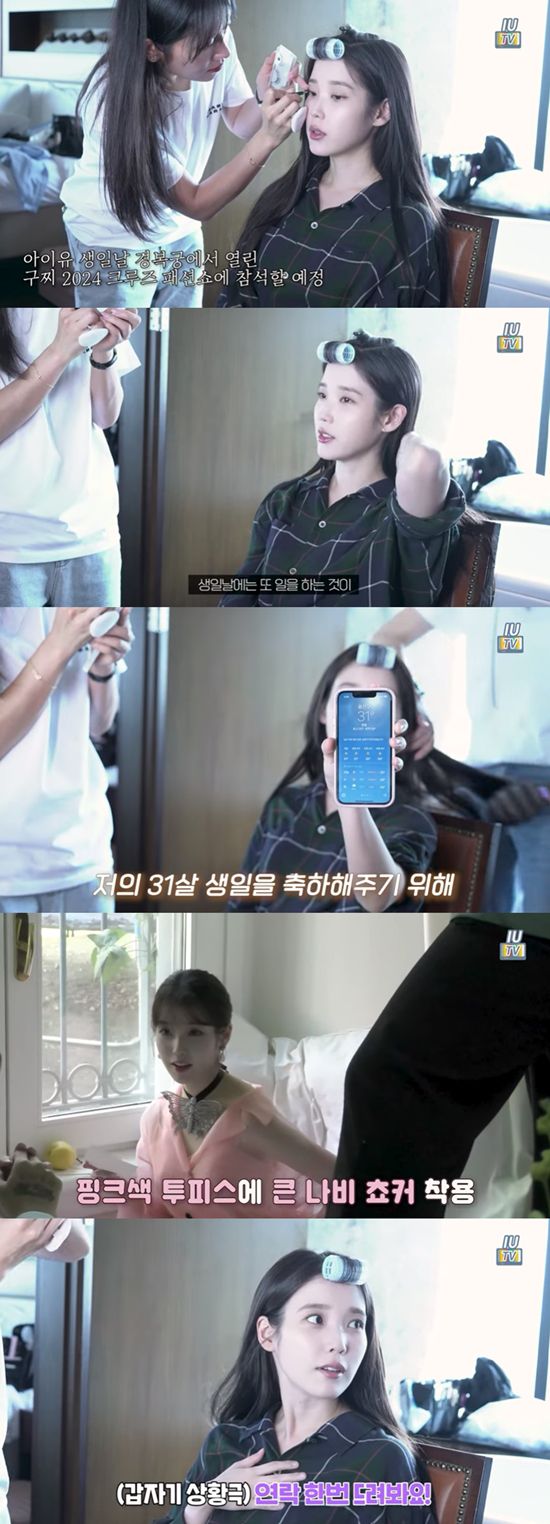 아이유는 스태프들의 축하를 받으며 "생일에는 일을 하는 것이 최고다. 오늘은 중요한 스케줄이 많이 있다. 날씨도 31도다. 저의 31살 생일을 축하해 주기 위해 31도로 맞춰져 있다"고 너스레를 떨었다.
