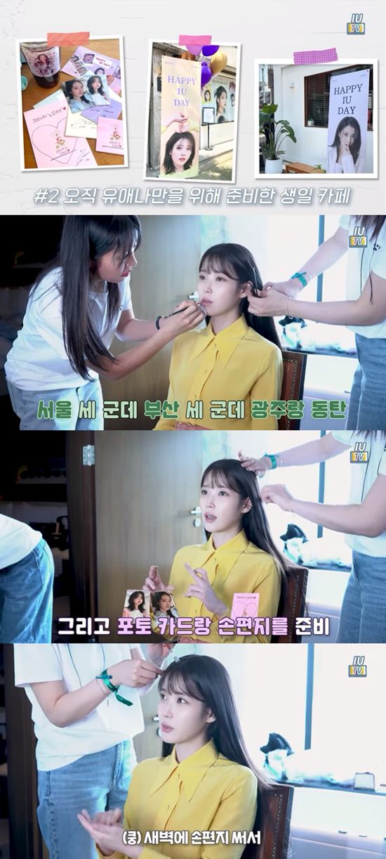 생일을 맞아 아이유는 팬들을 위한 역조공으로 생일카페를 준비했다고.