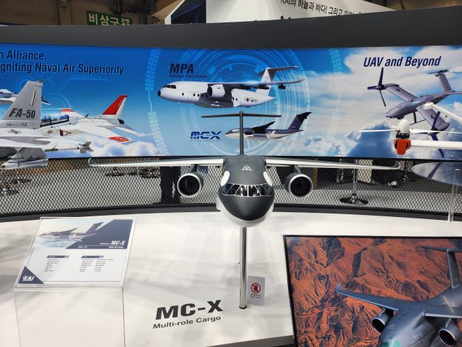 다목적 수송기 MC-X 모형(앞)과 해상초계기 형상(뒤)./제공=KAI |