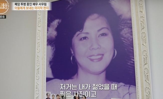 서우림은 “생사를 오갈 정도로 위험했다”며 2년 전을 떠올렸다. 서우림은 “한 달을 못 나가, 코에 산소를 끼고 창문만 내다봤다난 언제 걸어다니나 그랬다”며 “폐암수술하고 폐결핵이 와 자꾸 죽는걸 생각해, 더 살아야되는데 이러다아들 생각하면 반성했다”고 했다.