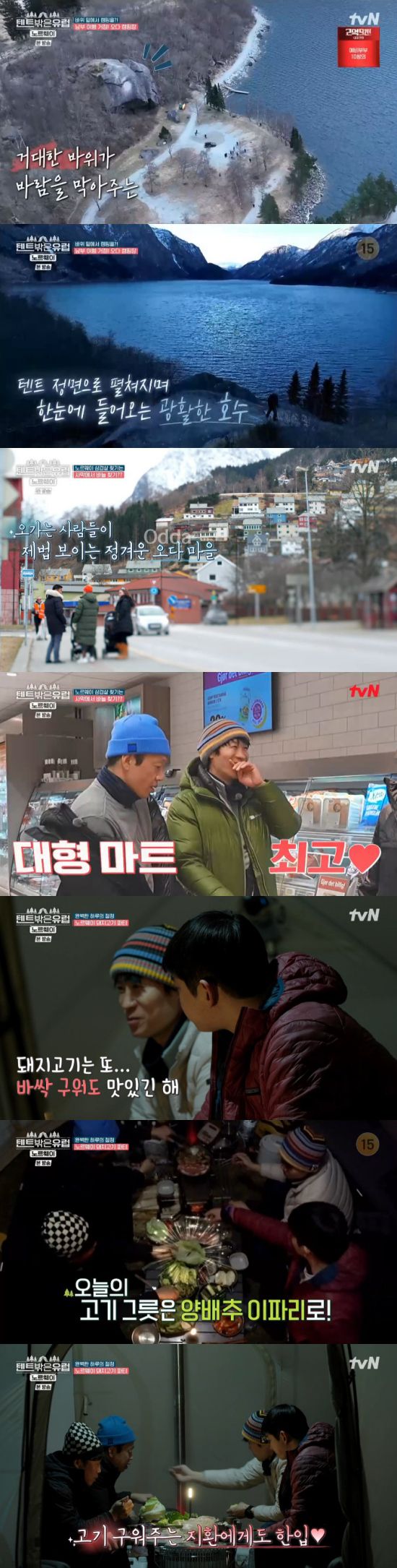 8일 방송된 tvN '텐트 밖은 유럽-노르웨이 편' 5화에서는 유해진, 진선규, 박지환, 윤균상이 오다 마을에 위치한 새로운 캠핑장으로 이동한 장면이 전파를 탔다.
