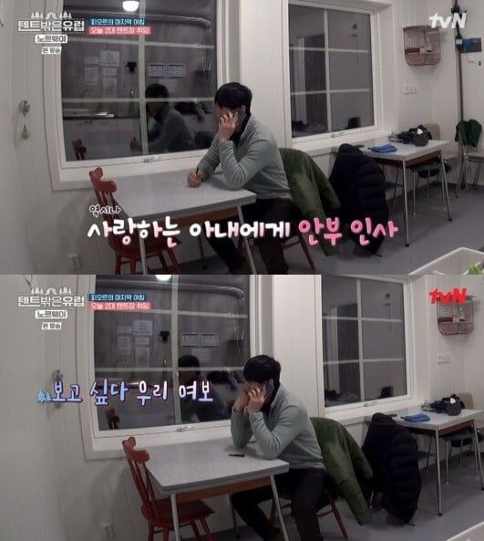 6월 8일 방송된 tvN '텐트 밖은 유럽-노르웨이 편'에서는 아침에 눈뜨자마자 아내에게 전화를 건 모습이 담겼다.
