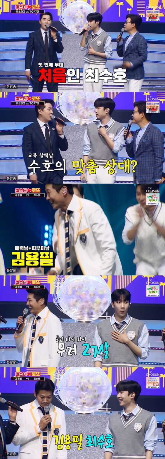 최수호의 노래 대결 상대는 김용필이었다. 진성은 김용필을 "기럭지면 기럭지, 얼굴이면 얼굴, 품격이면 품격, 전부 갖춘 에이스"라고 추켜세웠다. 김용필과 최수호는 27살 차이였다.