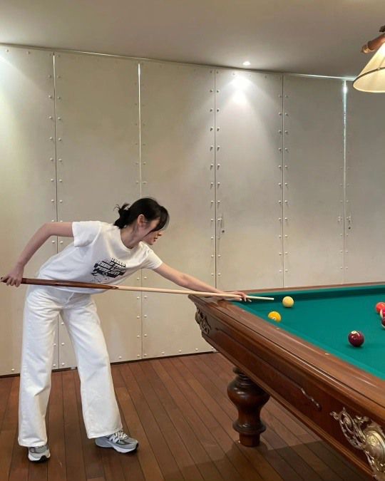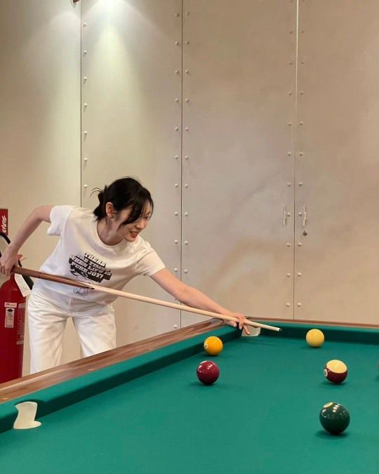 공개된 사진 속에는 김연아가 당구를 치는 모습이 담겼다. 쉽지 않은 듯 수줍게 미소 짓는 김연아가 러블리함을 자아내고 있다.