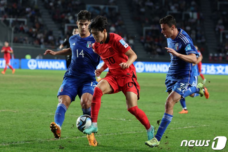 (서울=뉴스1) 김도용 기자 = 한국의 2연속 20세 이하(U20) 월드컵 결승 진출이 끝내 무산됐다. 아쉽게 졌지만 김은중호의 에이스 배준호(대전)는 유럽 강호 이탈리아를 상대로 번뜩이는 재능을 마음껏 과시하며 자신의 가치를 더욱 높였다.