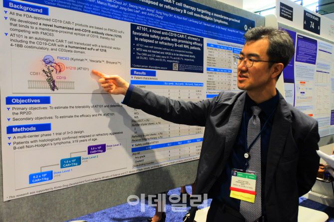 윤 교수는 “AT101은 상업화된 CAR-T 치료제보다 암세포 결합부위가 가깝고 인간화 항체를 사용하기에 약 효능이 좋을 것으로 기대했다”면서 “이러한 기대가 임상 1상 결과로 나온 것”이라고 말했다,
