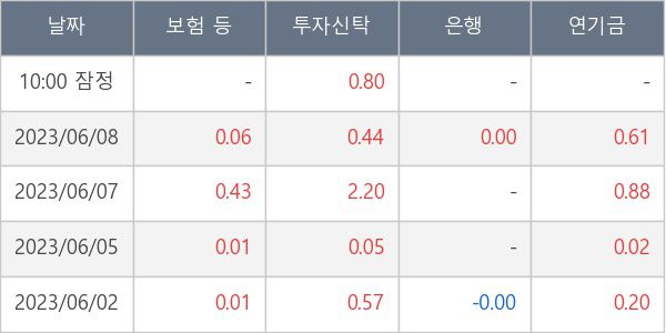 ※ 사모펀드 등 일부 기관의 순매매량은 표시되지 않음
