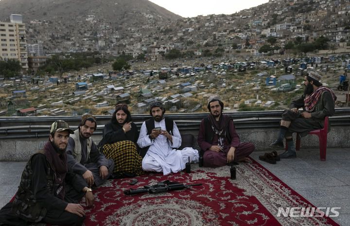 [카불=AP/뉴시스] 8일(현지시각) 아프가니스탄 카불의 한 사원에 탈레반 병사들이 모여 휴식하고 있다. 2023.06.09.