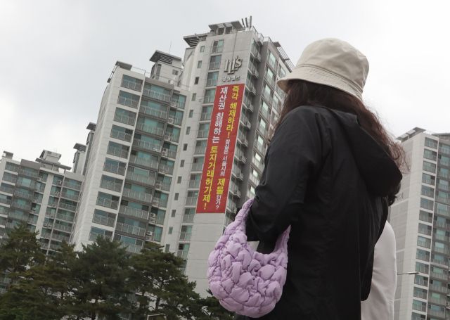 ▲부동산은 오랜 기간 한국에서 '불패'의 자산으로 대접 받아왔다. 사진은 지난 8일 서울 송파구 잠실동에 토지거래허가제 폐지 촉구 현수막이 걸려있는 아파트 모습. ⓒ연합뉴스 |