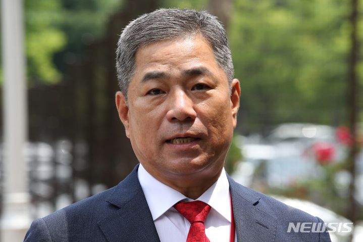 [과천=뉴시스] 조성우 기자 = 민병삼 전 100기무부대장이 9일 오후 경기도 정부과천청사 공수처에 송영무 전 국방부 장관의 계엄문건 관련 허위 사실확인서 서명 강요 의혹 수사 관련 조사를 받기 위해 참고인 신분으로 출석하며 취재진 질문에 답하고 있다. 2023.06.09. xconfind@newsis.com |