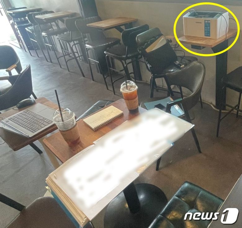 (서울=뉴스1) 소봄이 기자 = 카페에 프린터(인쇄기)를 들고 와 사무실처럼 꾸민 손님들의 모습이 포착돼 누리꾼들의 뭇매를 맞았다.