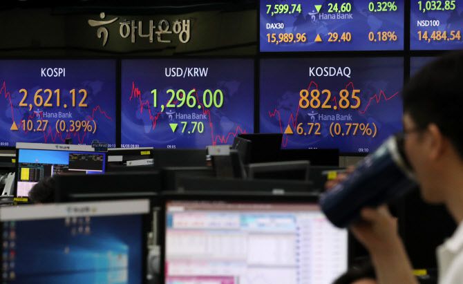 마켓포인트에 따르면 이날 코스피 지수는 전 거래일 대비 30.31포인트(1.16%) 오른 2641.16에 거래를 마쳤다. 간밤 뉴욕증시 강세 영향에 전 거래일 대비 13.3포인트 오른 2624.15로 출발한 코스피 지수는 장중 상승폭을 키우며 2640선을 돌파했다. 종가 기준 코스피 지수가 2640선을 넘어선 것은 지난해 6월 3일(2670.65) 이후 1년여 만에 처음이다.