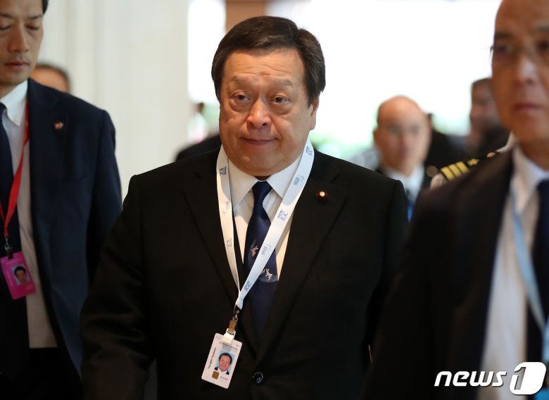 제20차 아시아안보회의(샹그릴라 대화)에 참석 중인 하마다 야스카즈 일본 방위상이 4일(현지시간) 싱가포르 샹그릴라 호텔에서 열린 한·일 양자회담을 마친 뒤 회담장을 나서고 있다. 2023.6.4/뉴스1 ⓒ News1 박지혜 기자